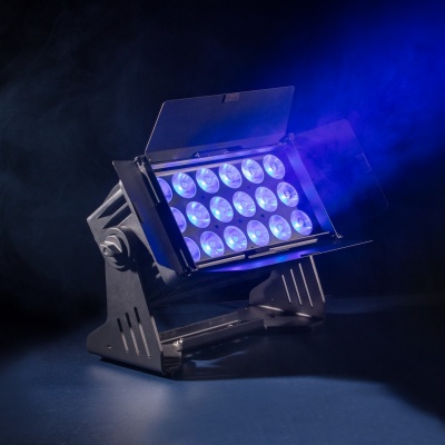 Equipped with 15W RGBW 4-in-1 LEDs (8 LEDs for MoodMaster 8 and 18 LEDs for MoodMaster 18), these fixtures provide uniform and powerful illumination, ideal for backdrops, architectural structures, and stage settings. The standard 10° beam angle can be customized with a frost diffuser (40°) or an asymmetric lens (10° x 60°) to accommodate a variety of needs. Additionally, both models come with included barndoors, allowing precise light control to avoid waste and unwanted light dispersion.