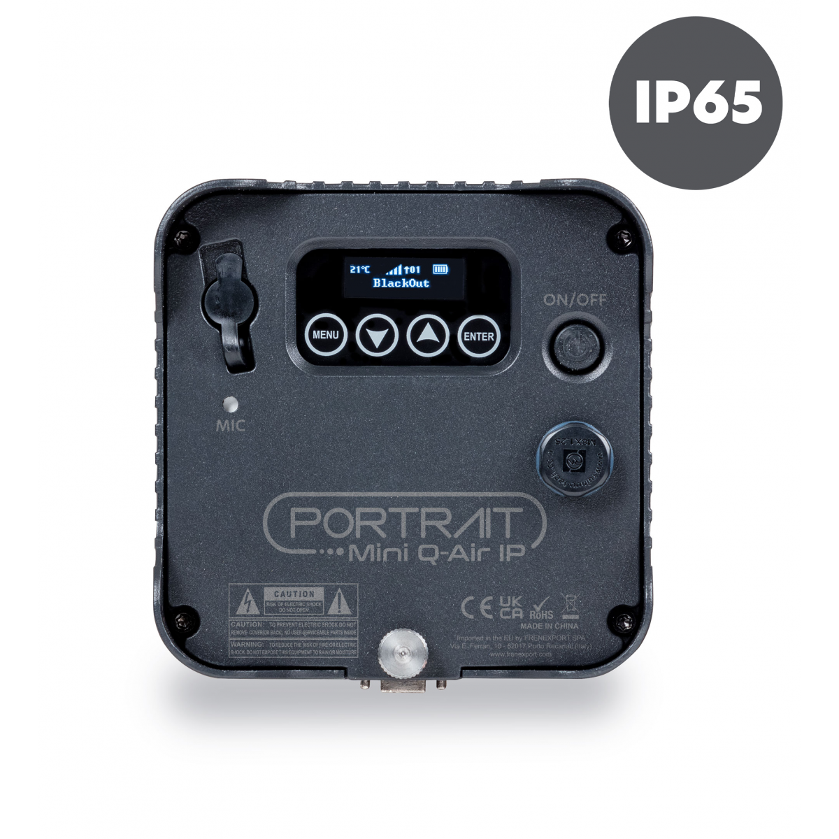 With an IP65-rated housing resistant to water and dust, plus a compact, lightweight design, the Mini Portrait Q Air IP PAR is easy to transport, install, and use in both indoor and outdoor environments, without compromising professional-grade reliability.