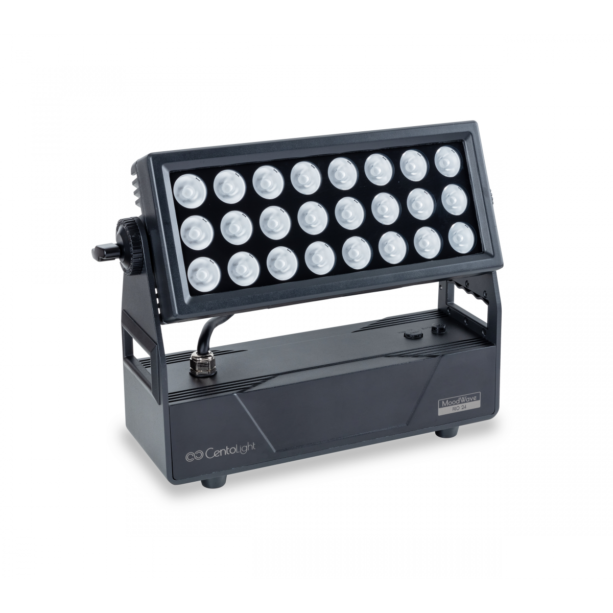Il Centolight MoodWave Pro 24 è un proiettore ad alte prestazioni progettato per applicazioni esigenti che richiedono precisione e versatilità. Dotato di 24 LED RGBW 4-in-1 da 20W ciascuno, offre un’illuminazione vibrante e uniforme con un angolo di fascio di 20°, espandibile a 40° grazie all’aggiunta di un filtro frost magnetico. Il dispositivo supporta una vasta gamma di modalità DMX (2, 3, 4, 9 e 12 canali) e include funzionalità avanzate come il DMX wireless (CRMX) per configurazioni senza cavi.